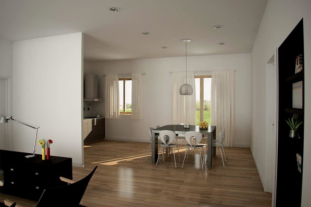 Maison traditionnelle d’inspiration moderne, la Maison UMA s’adapte parfaitement à une vie familiale. Savamment conçue avec une architecture rectangulaire, ses volumes intérieurs permettent d’évoluer dans un vaste séjour ouvert sur une cuisine baignée de lumière.